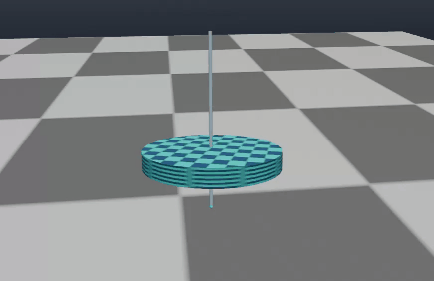 模拟一个在重力环境下旋转的陀螺仪。陀螺仪被赋予初始角速度后,会在重力作用下产生进动(precession)现象。